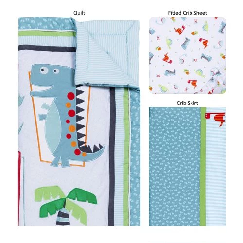- Set includes: Quilt, Crib Skirt and Fitted Crib Sheet